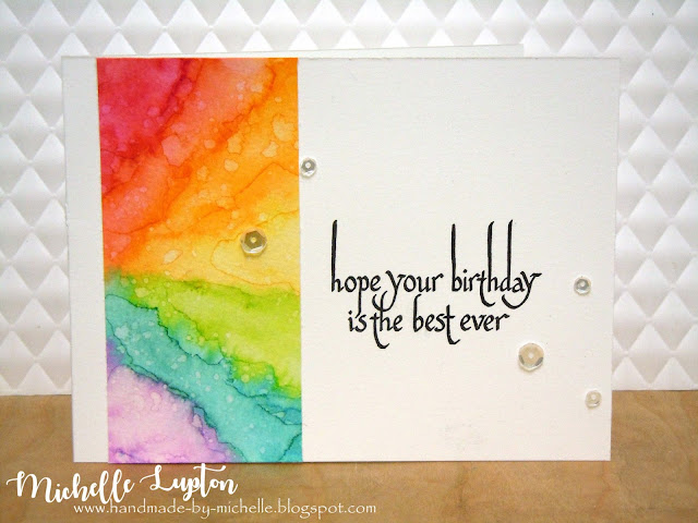 The sentiment is an old wood mount stamp from Stamp-It. The rainbow is done with Catherine Pooler inks.