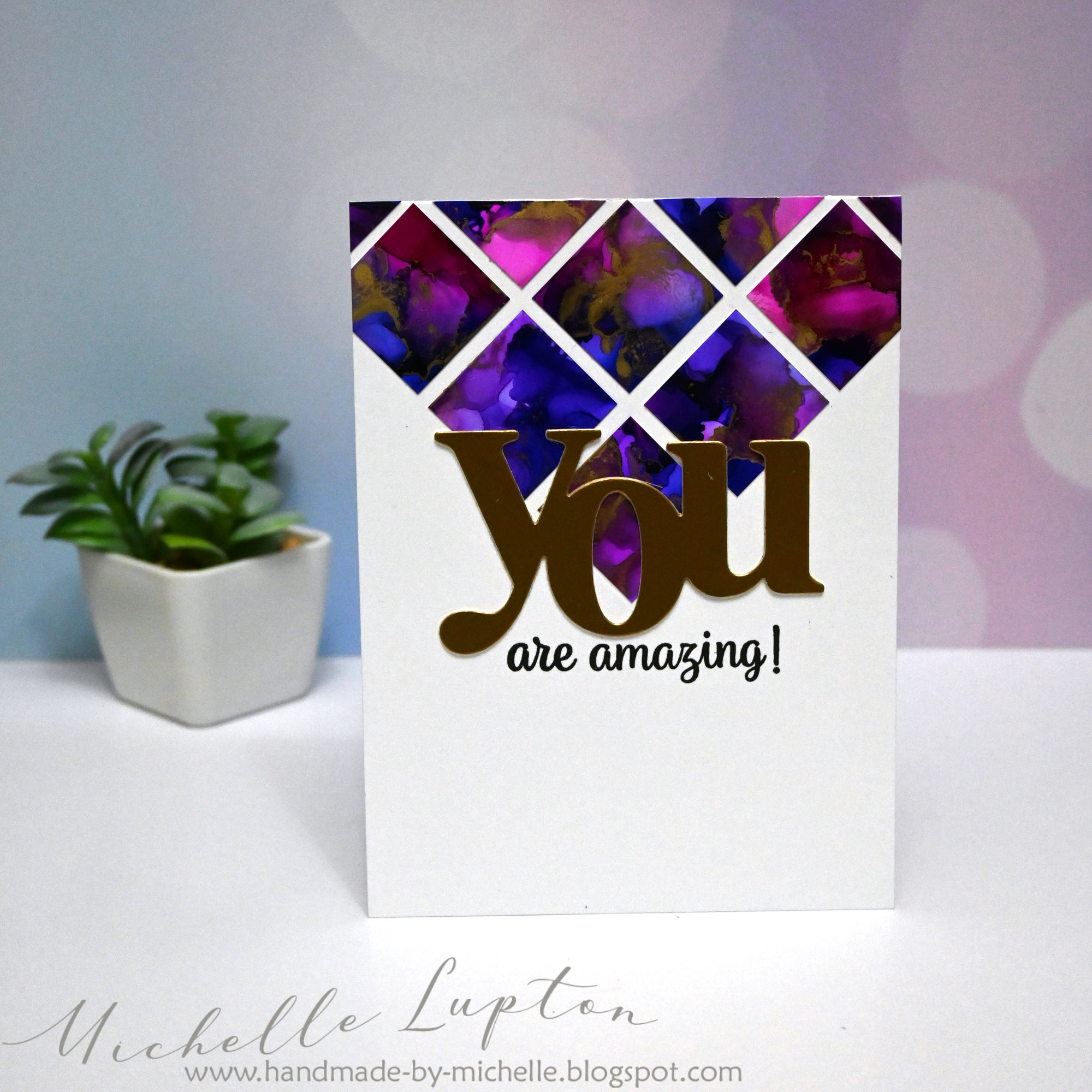 I made some cards last week with alcohol ink squares. I had a lot of people ask how I managed to get them lined up, so I made some more and made a video this time! (scroll down for the video)