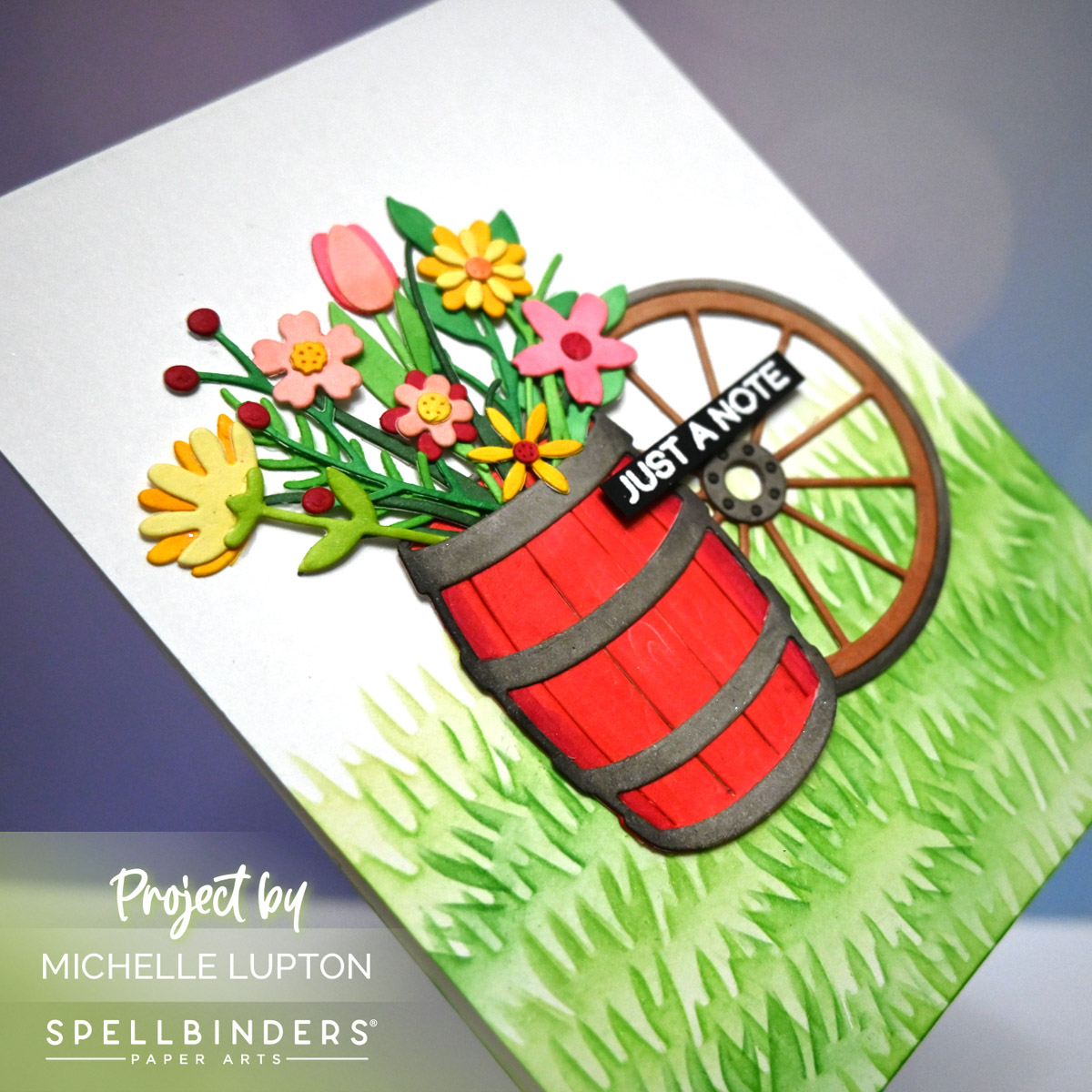 There's a new collection available at Spellbinders today - it is the Country Road collection by Annie Williams. I used the Garden Builder die set, along with the Rustic Garden die set on this card. (I used a stencil from Hero Arts for the grass.)