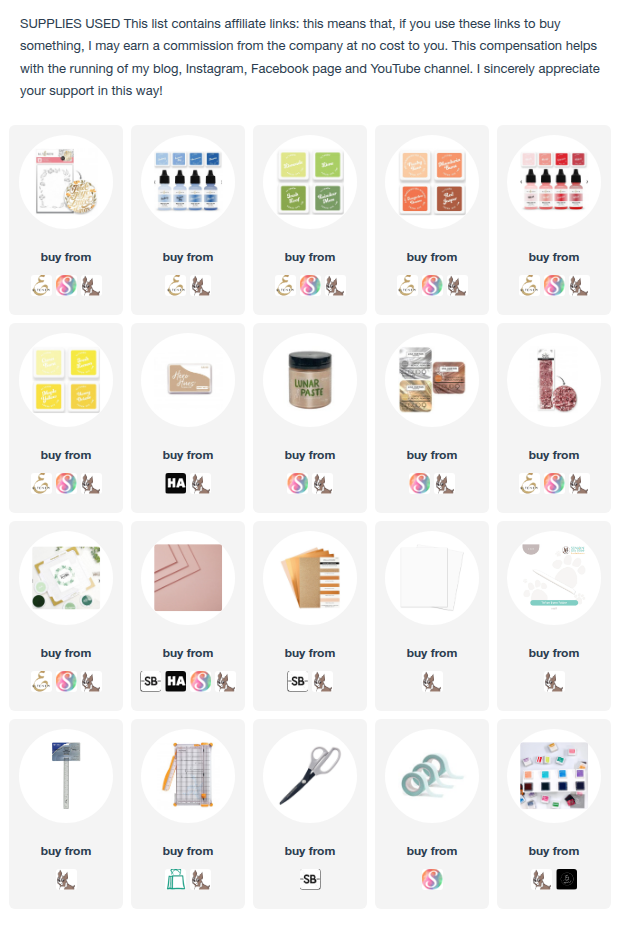 On my first card, I used a rainbow of fresh dye inks and crisp dye inks from Altenew along the Lunar Paste in the colour Cookie Dough. On the 2nd card, I used inks in pinks and browns, along with Lisa Horton Cloud 9 ink in Copper Pot.